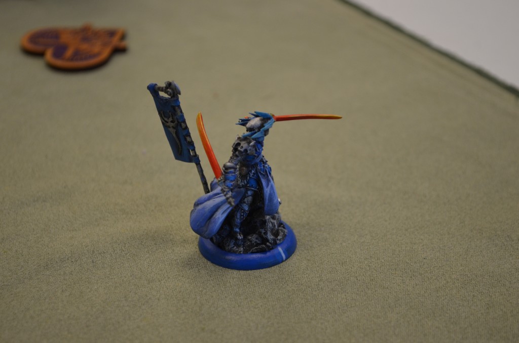 Finally, here’s Hugh’s winning model: Xasanoo, Herald of Skorne. He leads the vanguard of the Skorne army, and where he goes, pain is sure to follow. He wields two blades, one thirsting for his blood, the other hungry for the blood of others (Skarre 1).